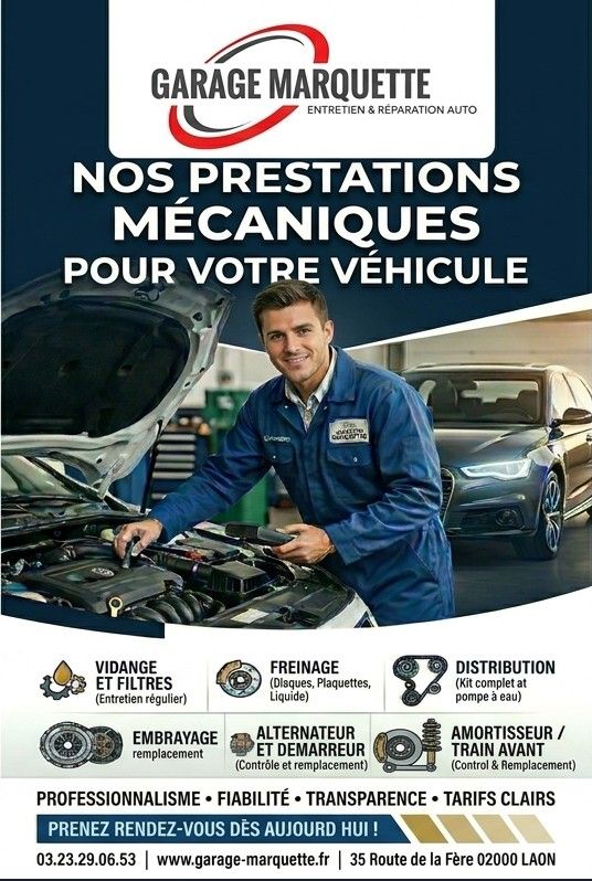 Au Garage Marquette, nous nous occupons de l'entretien de votre véhicule en respectant les préconisations constructeur.